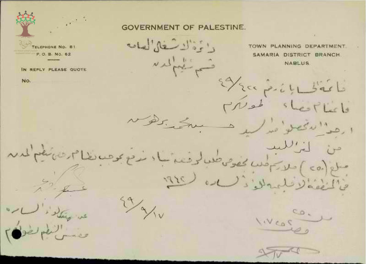 دائرة الأشغال قسم تنظيم المدن تطلب من حسين برهوش دفع 250 ملاً لرخصة بناء