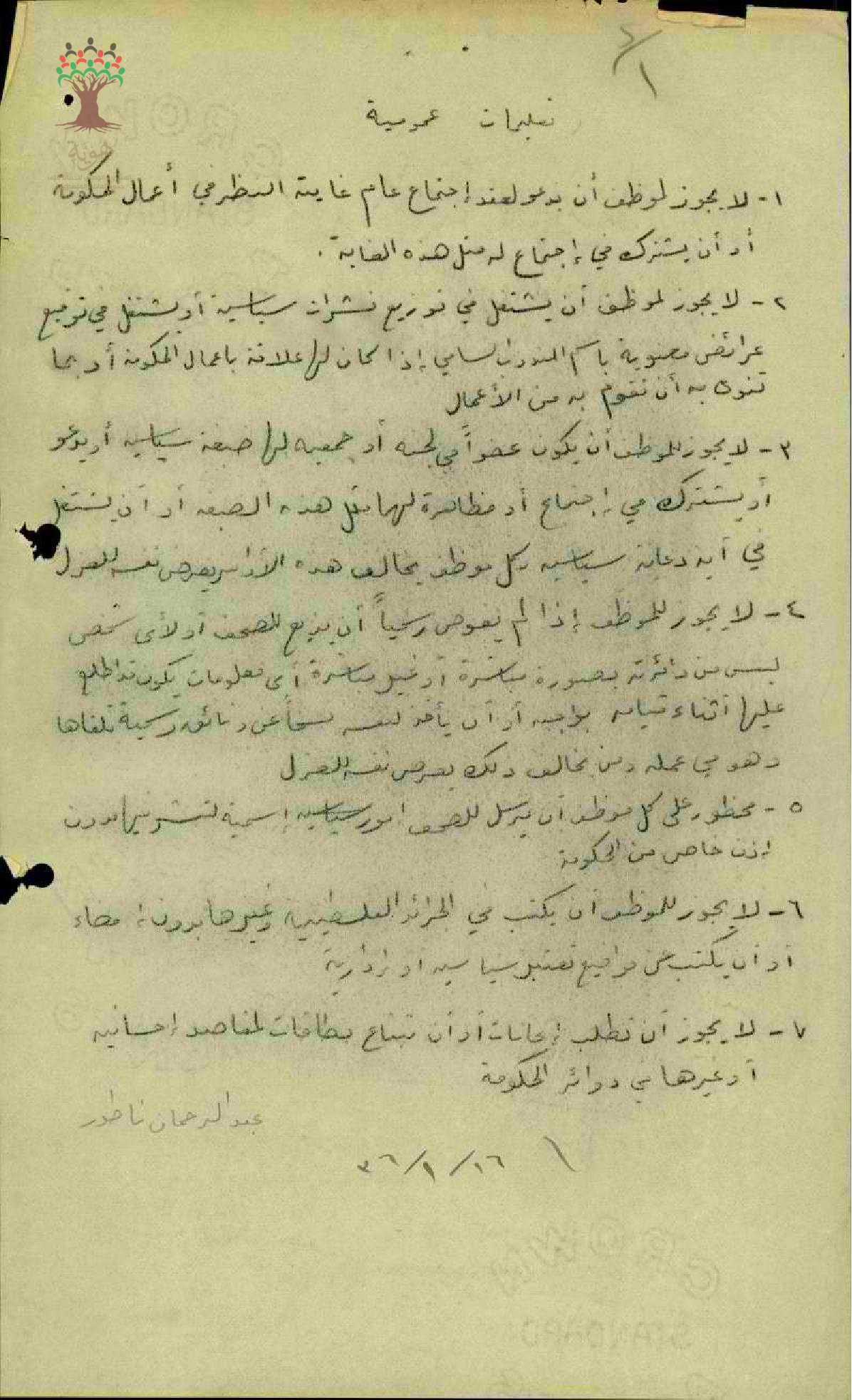 ورقة تعليمات عمومية صادرة عن حكومة فلسطين