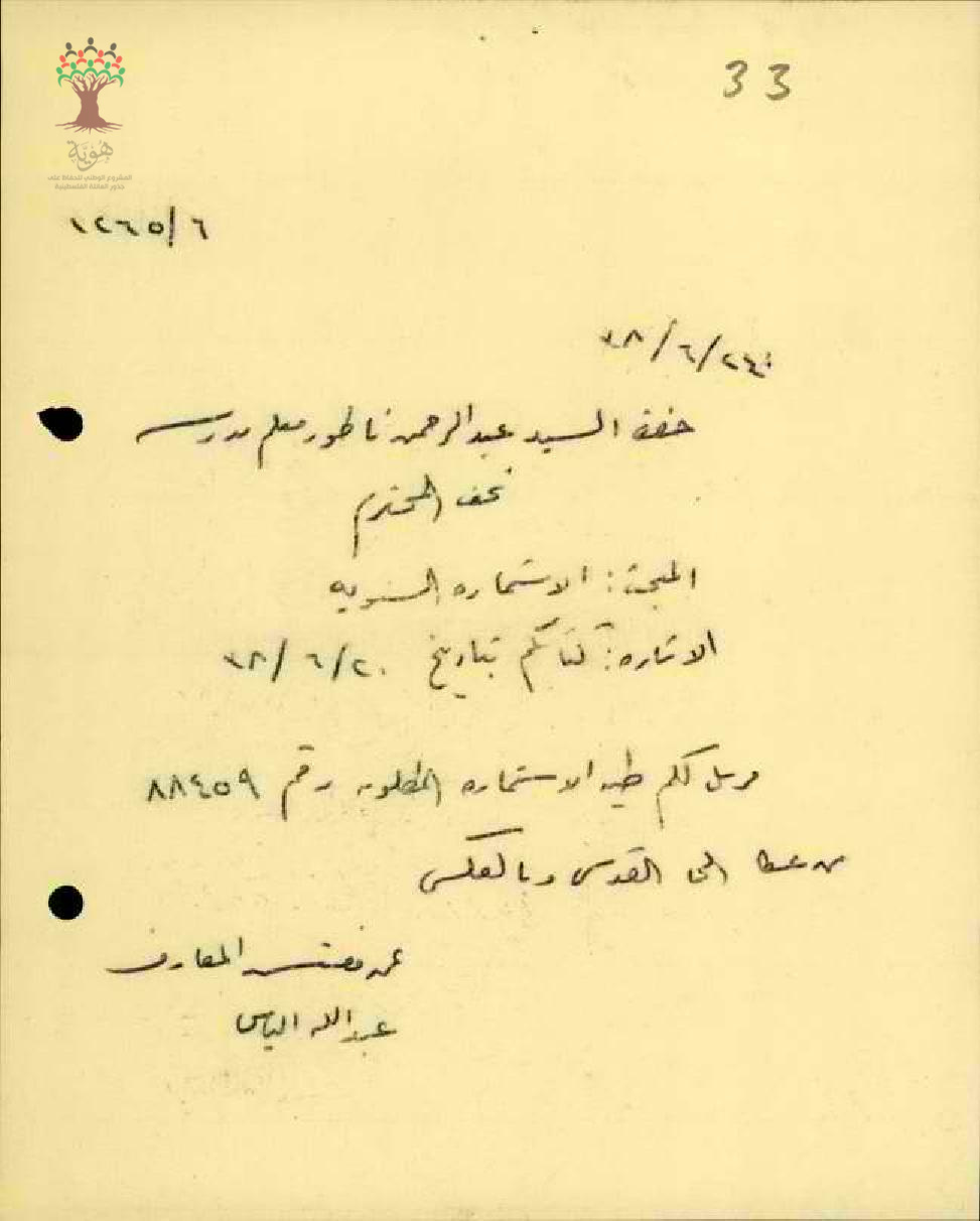 إخبار بارسال استمارة السفر السنوية للمعلم عبد الرحمن فرج الناطور من مدرسة الزيب