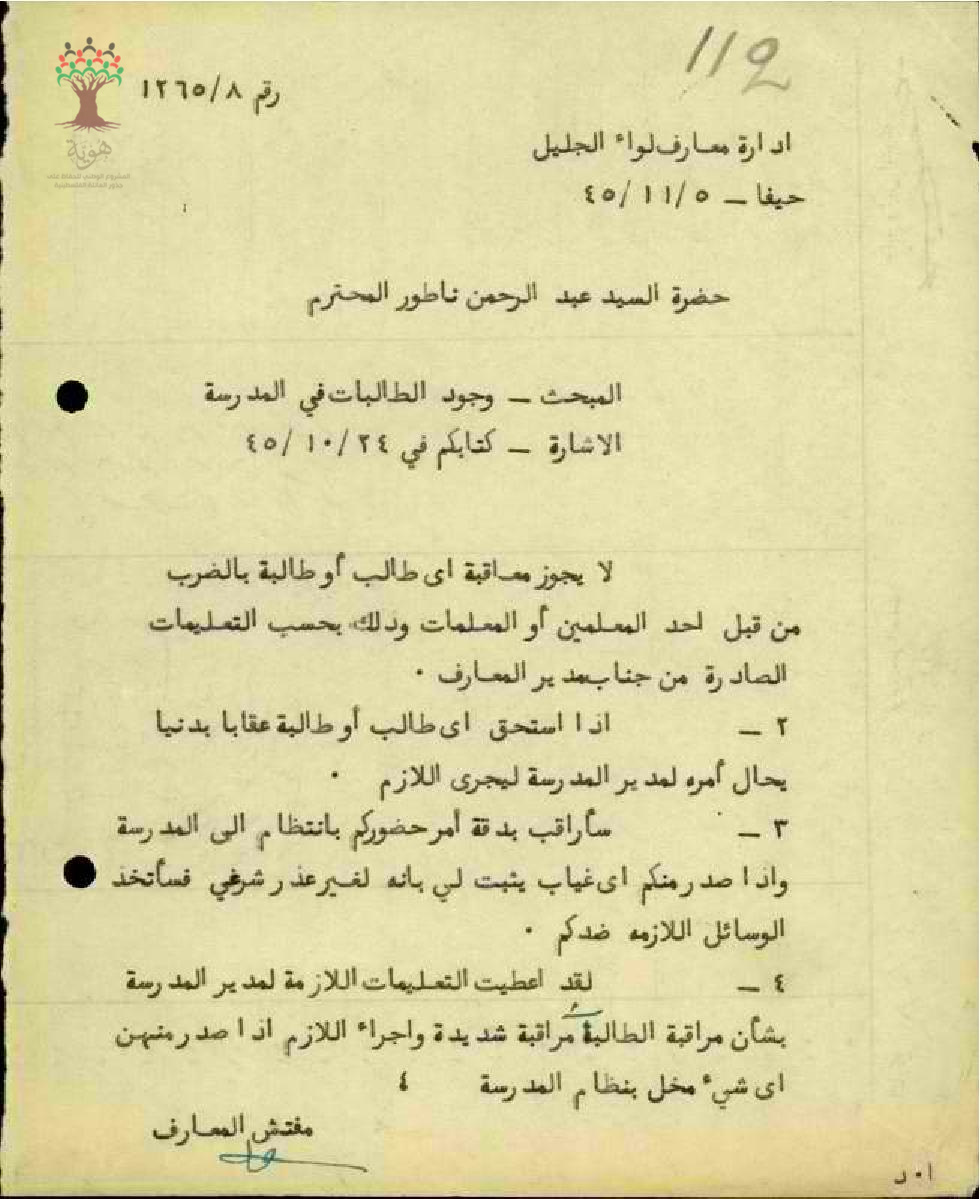 خطاب تذكير بالتعليمات المدرسية خاصة لجهة عدم ضرب او معاقبة اي طالب في المدرسة