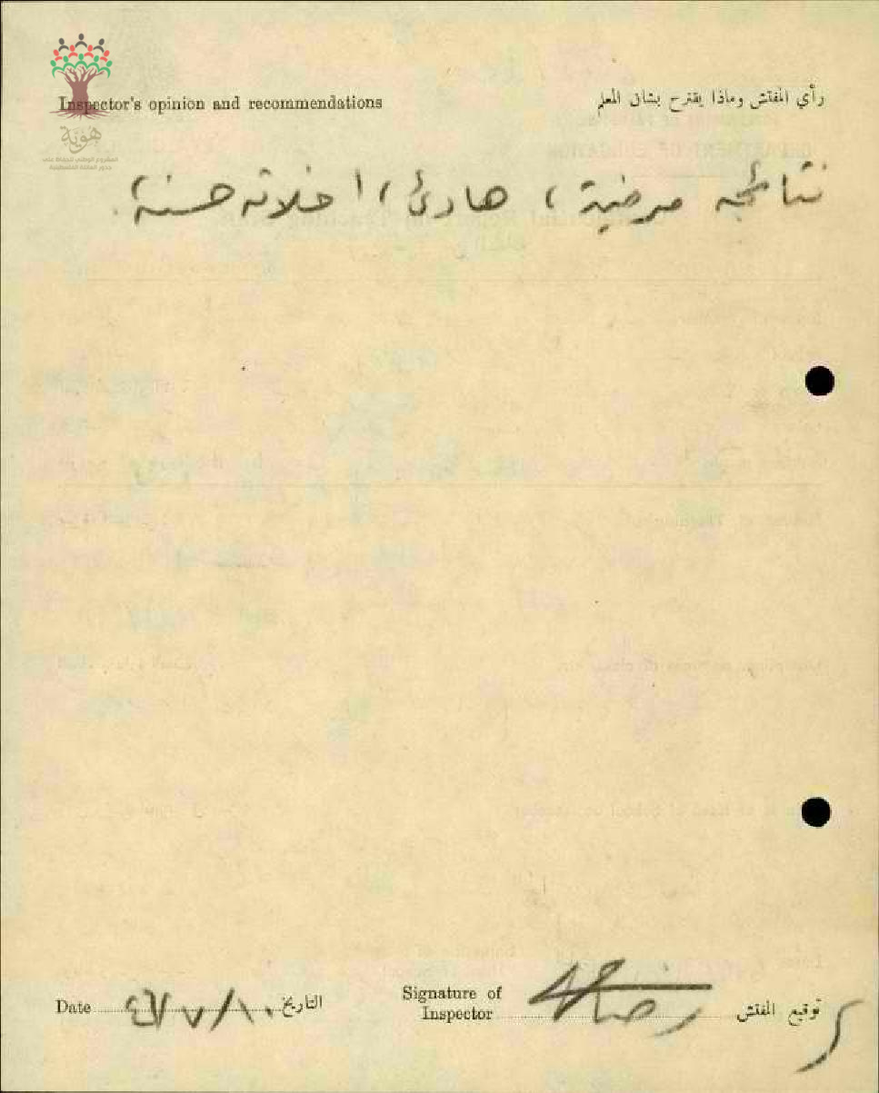 راي المفتش بلا معلم عبد الكريم محمد الشريف _نتائجة مرضية هادئ اخلاقه حسنة