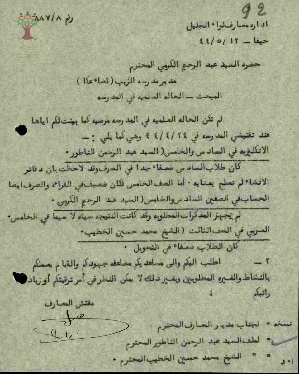 تقرير حول حالة الضعف العلمية للطلاب في مدرسة الزيب موده للمعلم عبد الرحمن فرج الناطور يحدد حالة الضعف في مواد اللغة الانجليزية والرياضيات