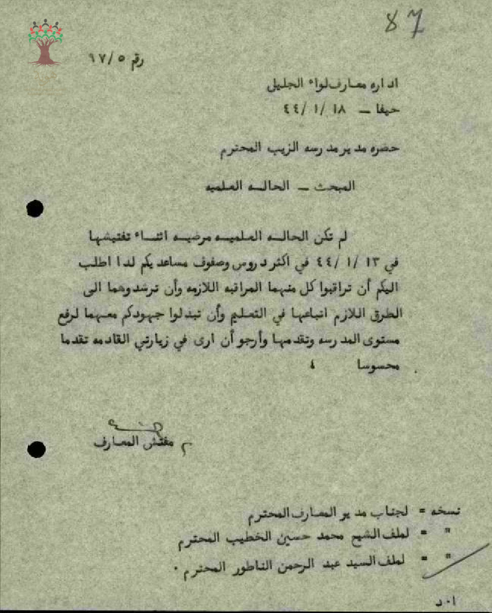 تقرير حول حالة الضعف العلمية للطلاب في مدرسة الزيب