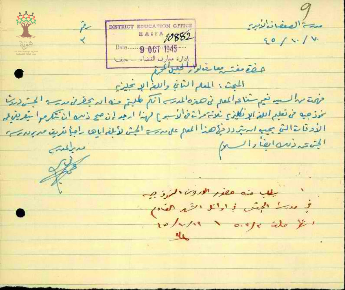 رسالة من مدير المدرسة الى مفتش المعارف فهمت من المعلم نعيم شناعة المعلم في هذه المدرسة انكم طلبتم ان يحضر في مدرسة الحبش