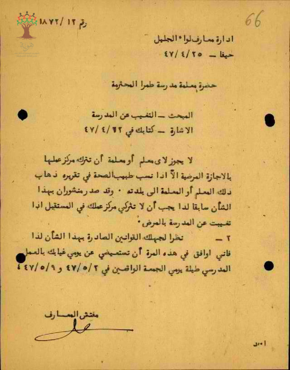 رسالة تذكير المعلمة رابعة عبد الحميد بقوانين الغياب عن المدرسة