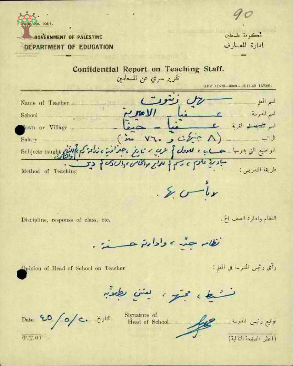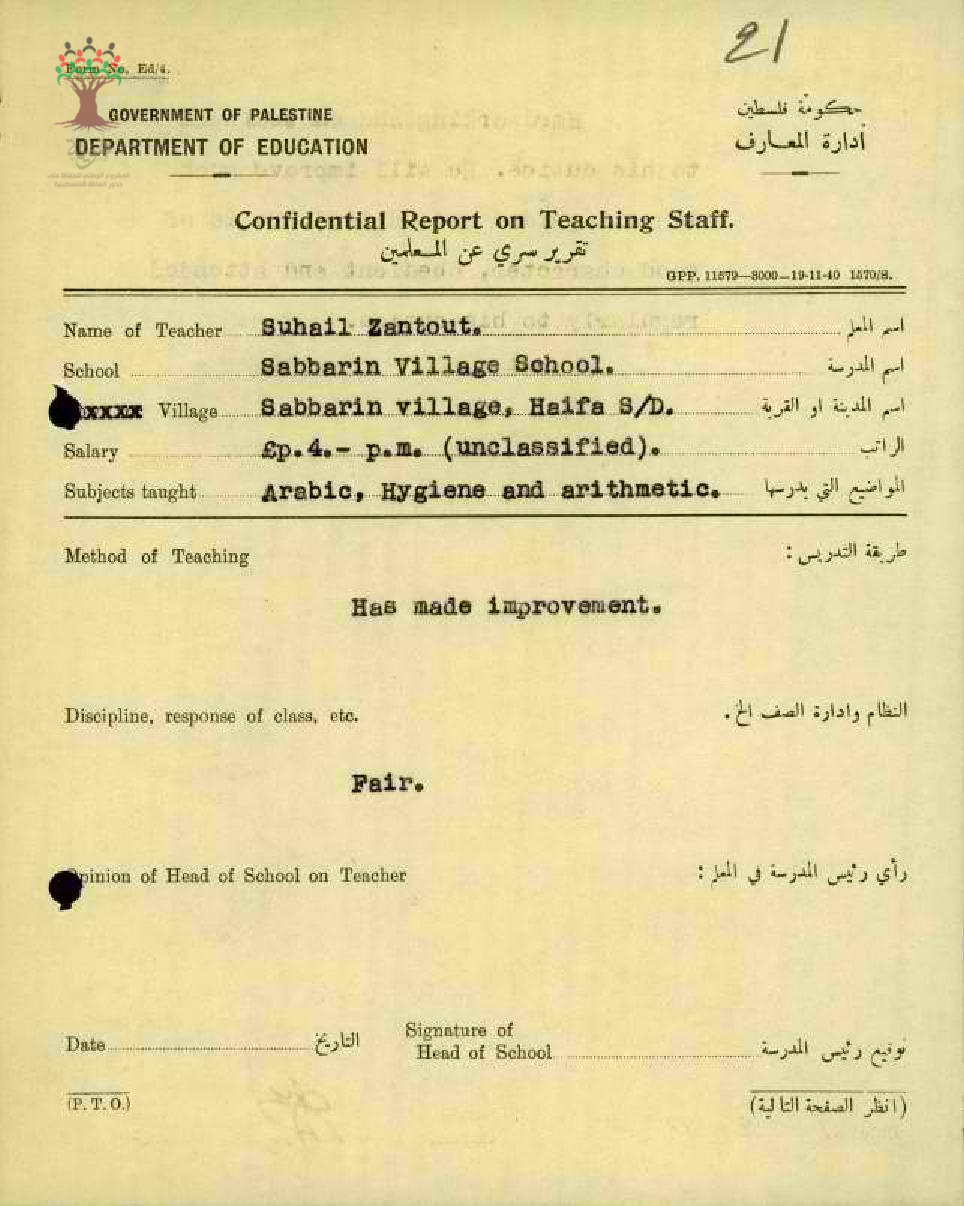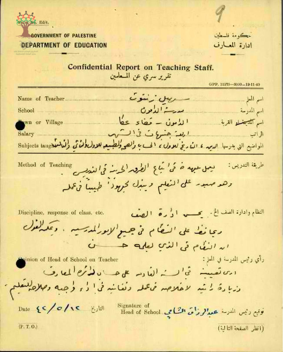 تقرير تفصيلي عن اداء املعلم سهيل زنتوت من مدرسة الدامون