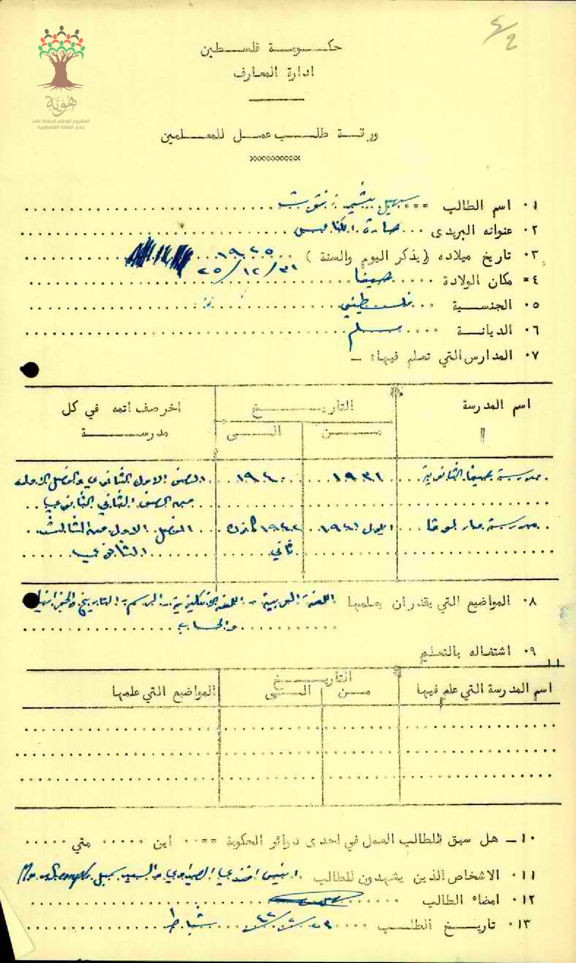 ورقة طلب عمل مقدمة من المعلم سهيل زنتوت من مدرسة الدامون
