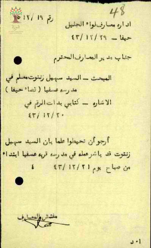 بدء المعلم سهيل زنتوت دوام العمل في مدرسة عسفيا