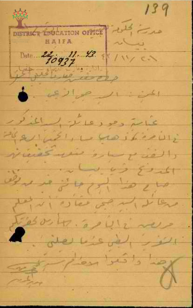 رسالة من مدير مدرسة بيسان الى مفتش المعارف بخصوص تغيب المعلم صبحي الزعبي مرفقة بالتقرير الطبي
