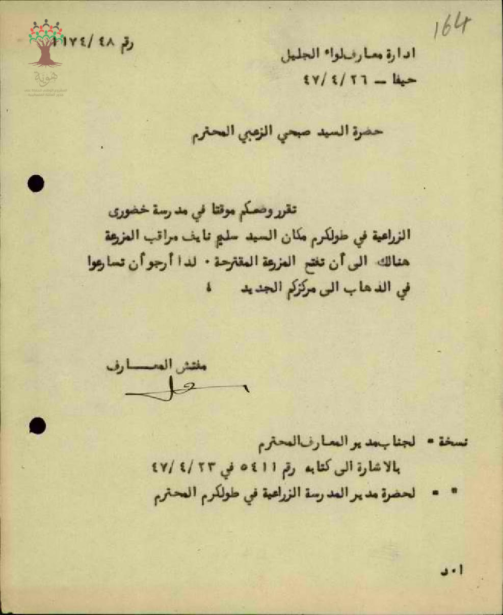 تعيين المعلم صبحي الزعبي مؤقتا في مدرسة خضوري الزراعية