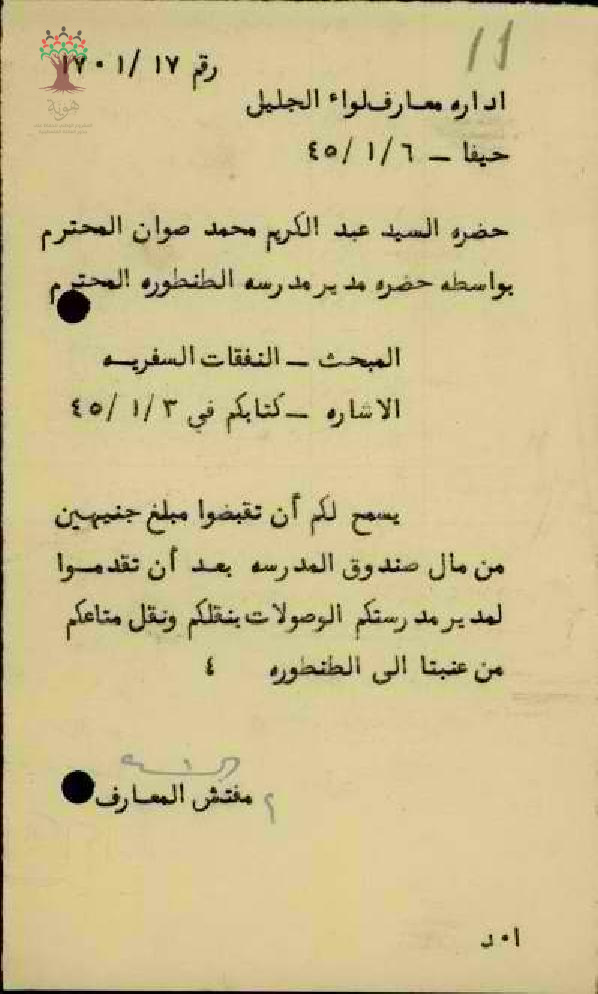 رسائل بخصوص دفع نفقات نقل اثاث المعلم عبد الكريم صوان
