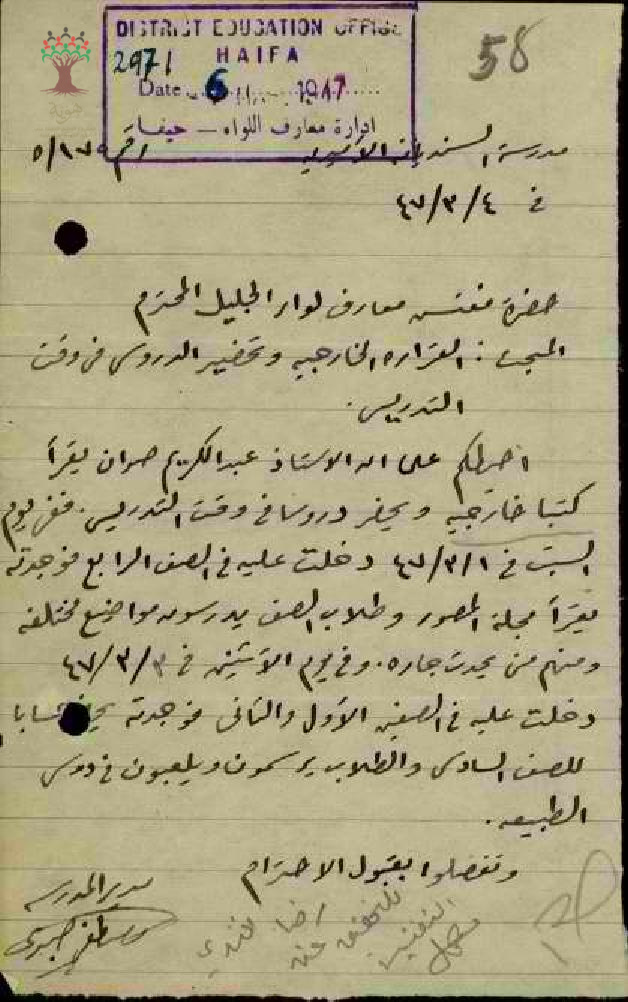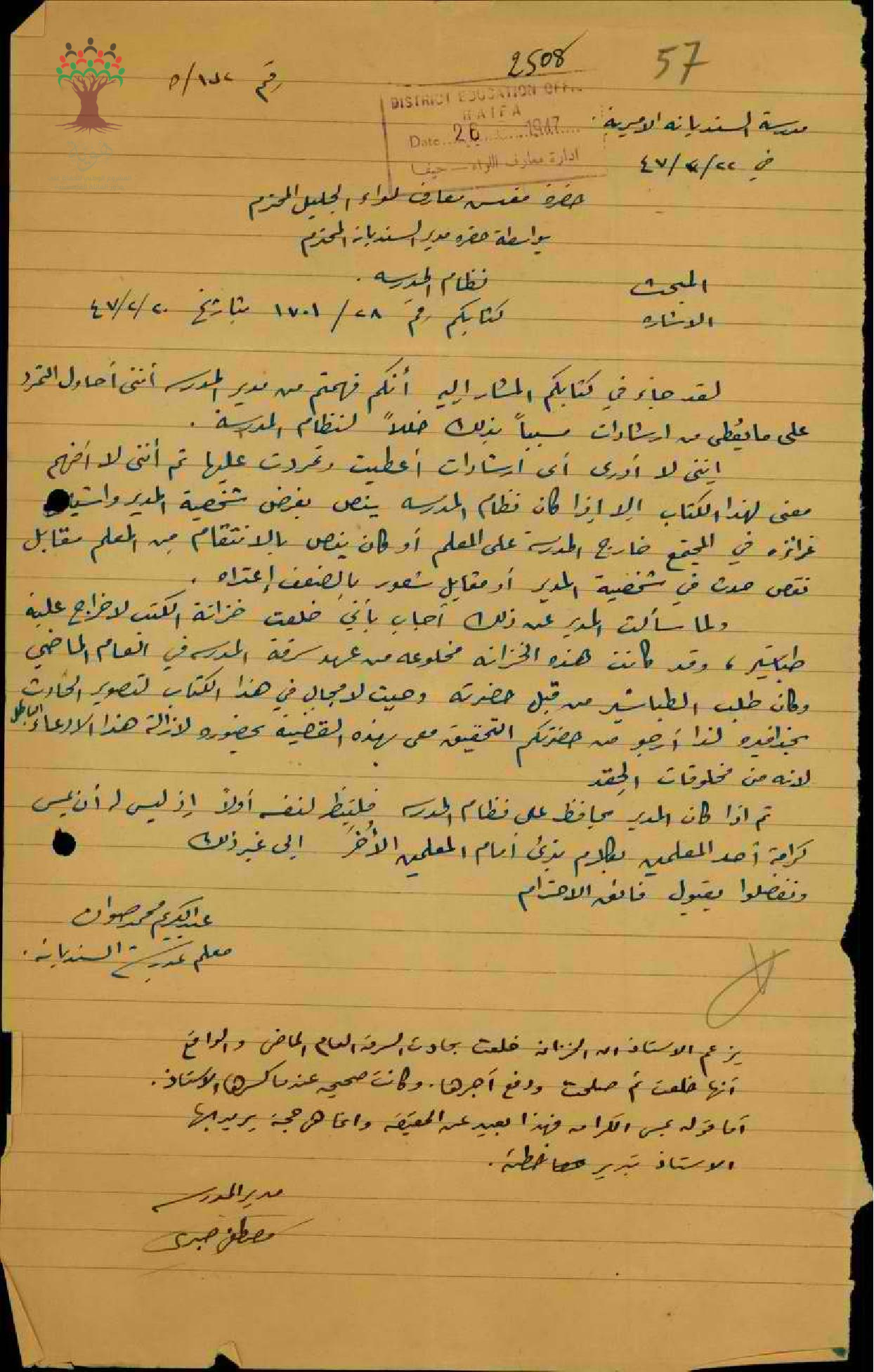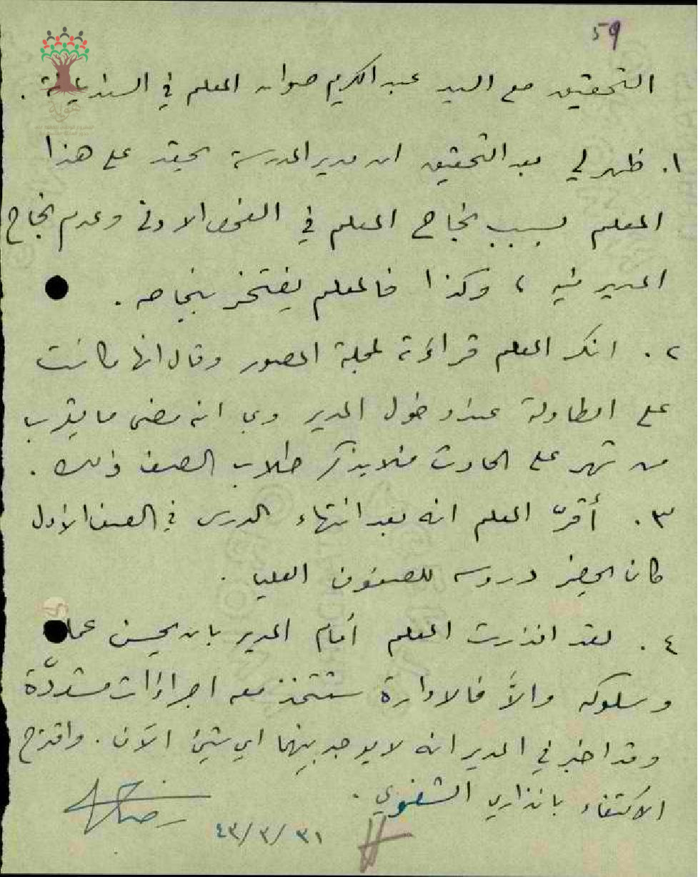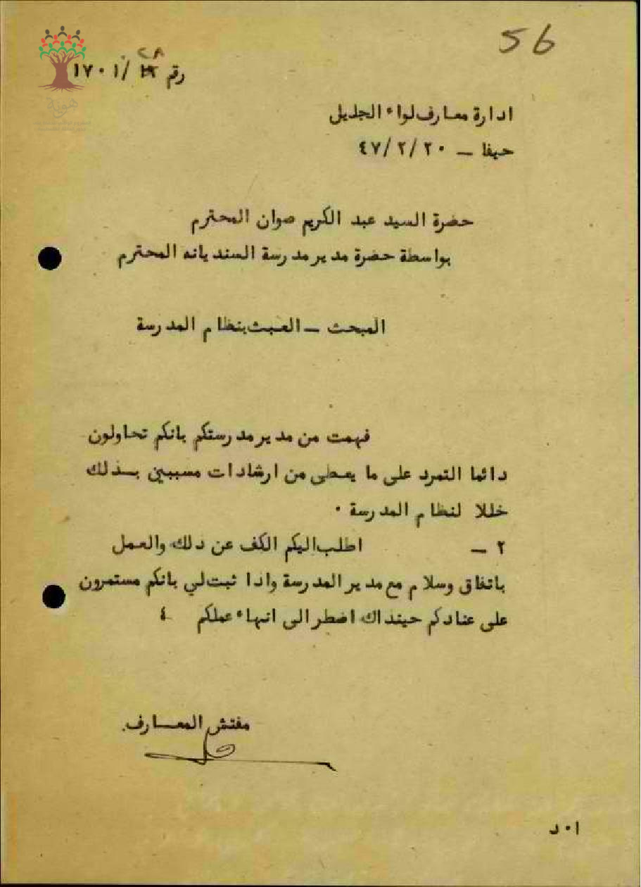 مجموعة رسائل بخصوص سلوك المعلم عبد الكريم صوان المتمرد والتحقيق معه