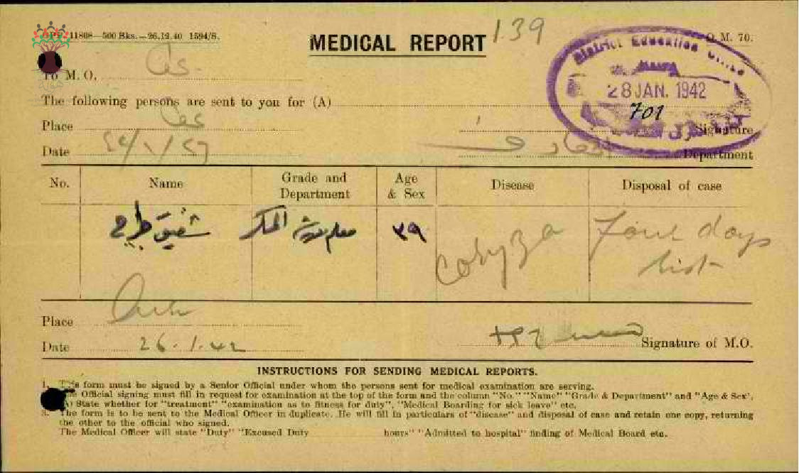 تقرير طبي عن غياب المعلم شفيق جراح-مدرسة المكر