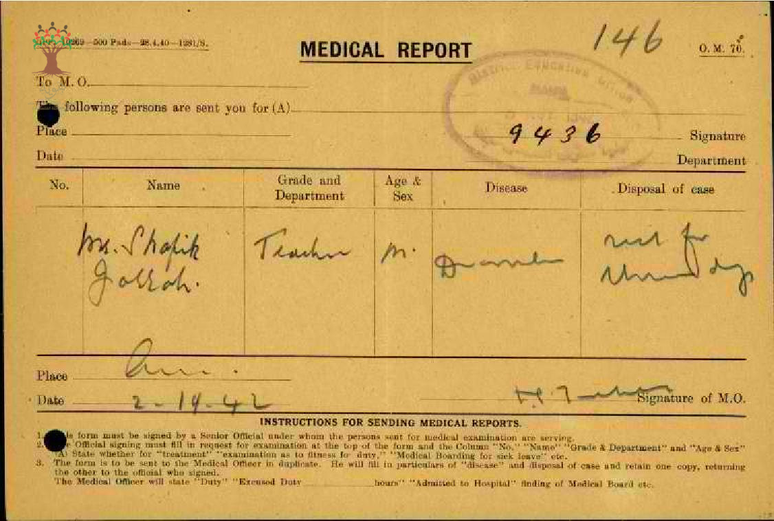 تقرير طبي عن غياب المعلم شفيق جراح-مدرسة المكر
