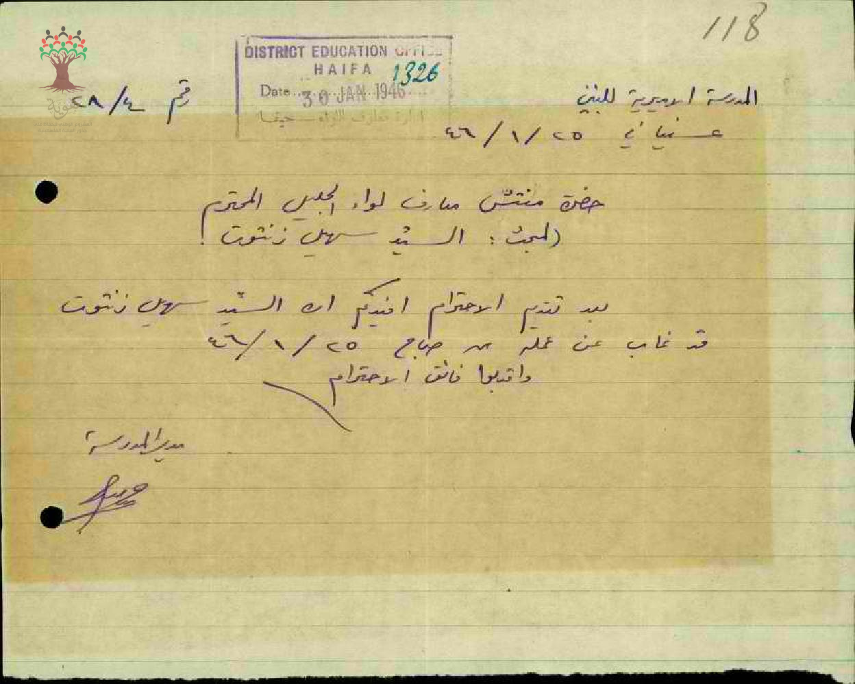 تقرير غياب المعلم سهيل زنتوت عن المدرسة