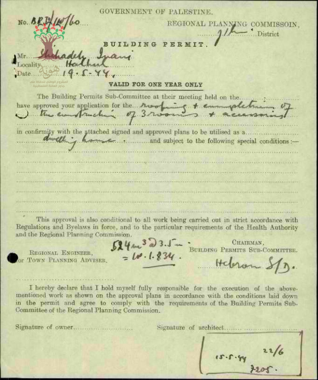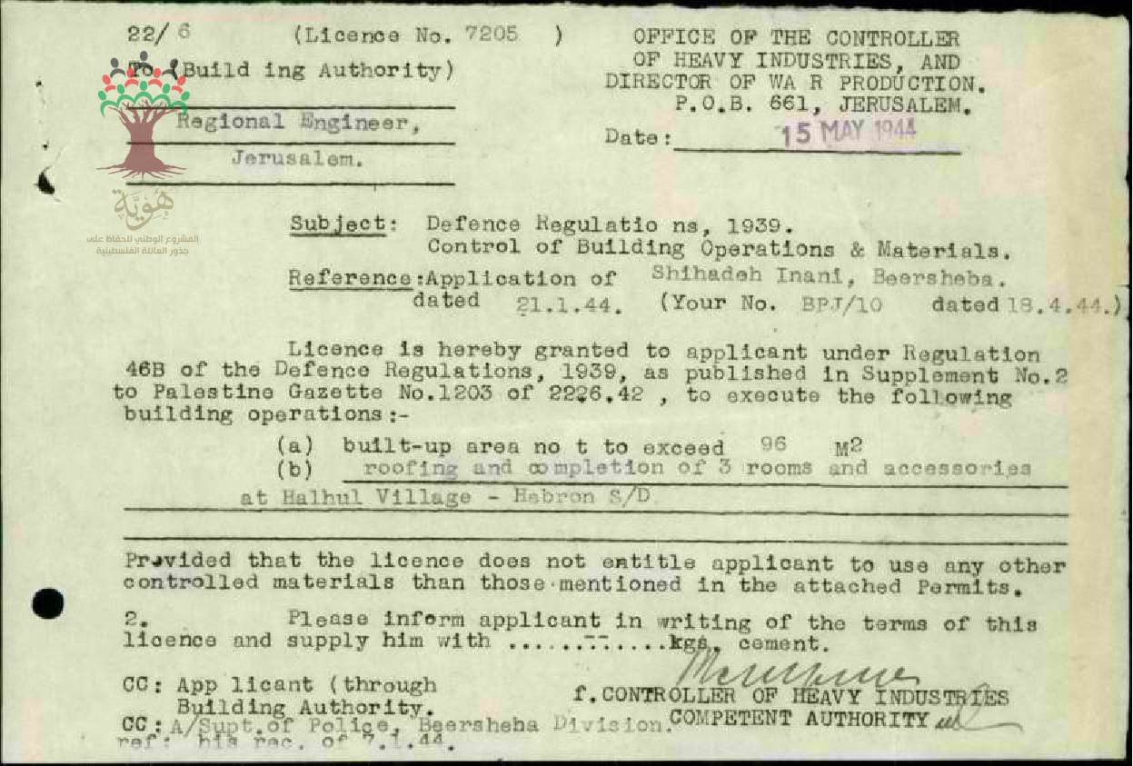طلب رخصة بناء 3 غرف - شحادة العناني - حلحول