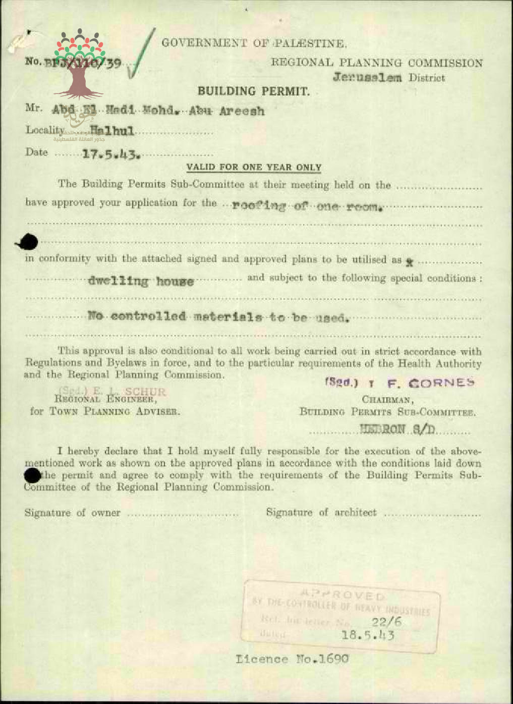طلب رخصة بناء - عبد الهادي محمد أبو عريش - حلحول