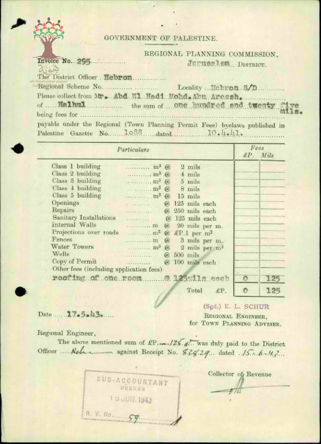 رسوم لطلب رخصة بناء غرفة - عبد الهادي محمد أبو عريش - حلحول