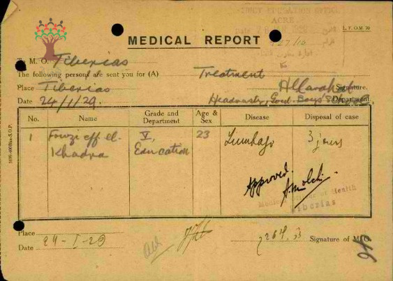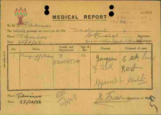 تقارير طبية عن غياب المعلم فوزي الخضرا مدرسة طبريا-صفد