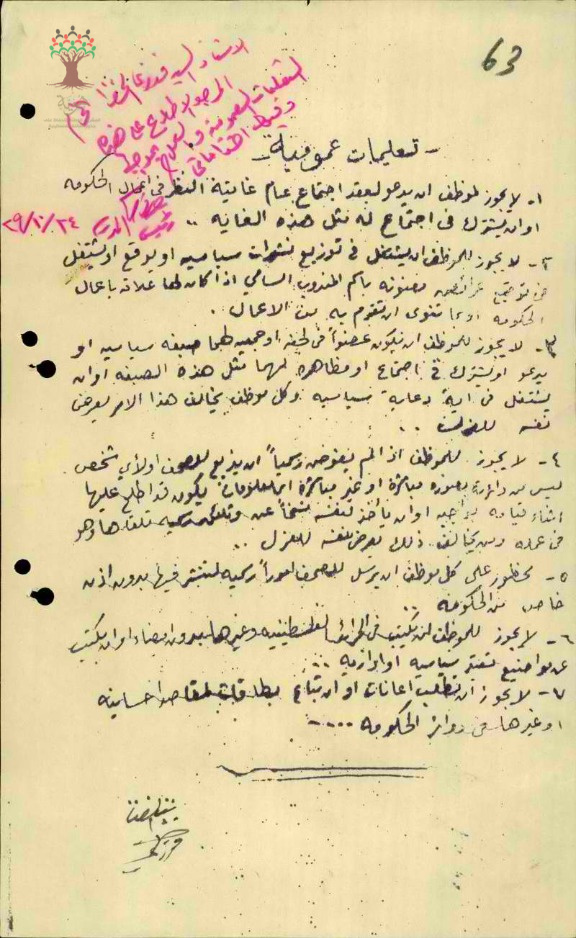 توقيع المعلم فوزي الخضرا على التعليمات العمومية لإدارة المعارف