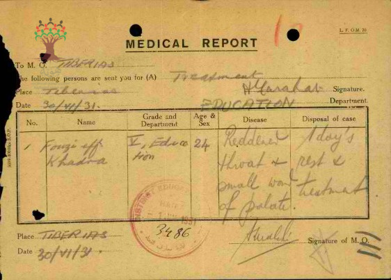تقرير طبي عن غياب المعلم فوزي الخضرا-مدرسة طبريا