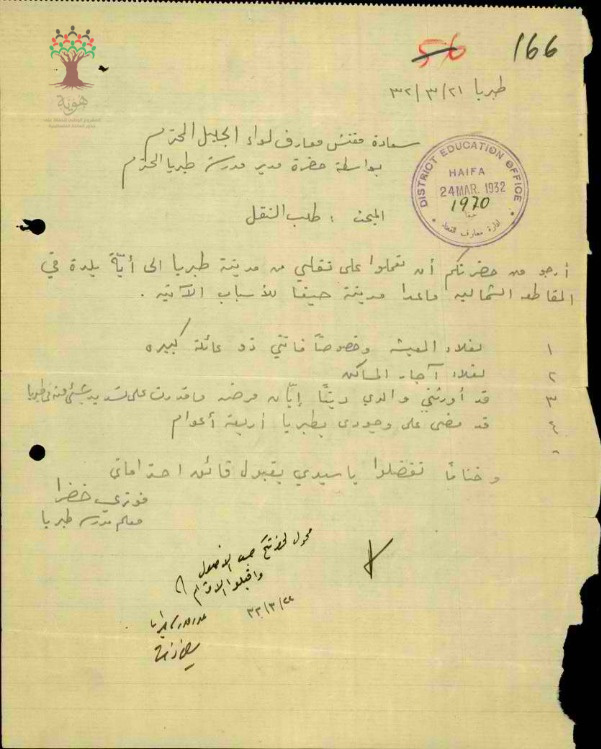 طلب نقل مقدم من المعلم فوزي الخضرا من مدرسة طبريا