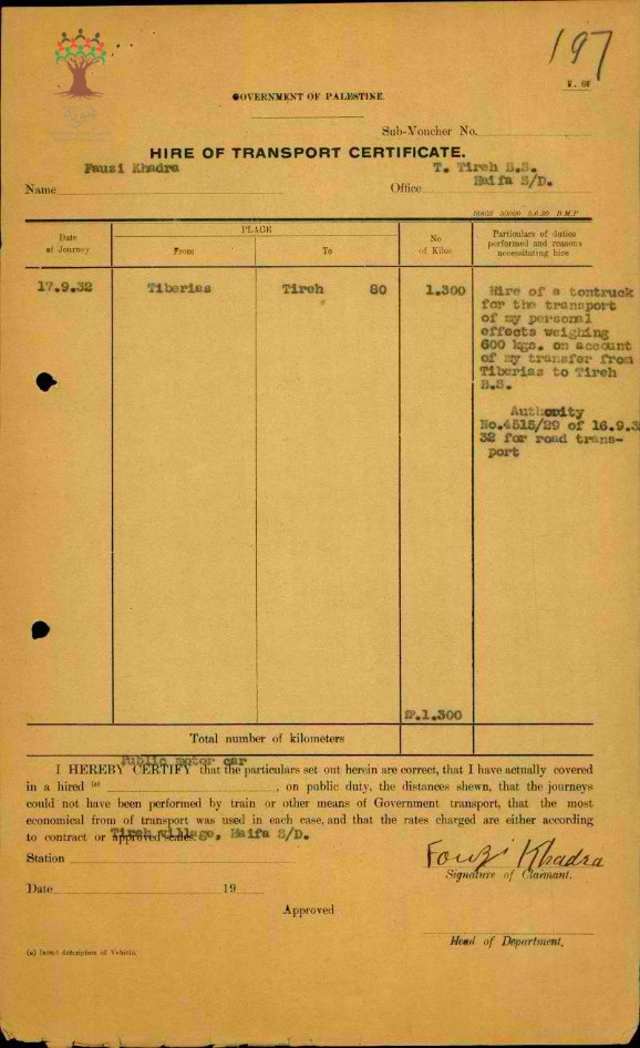أوراق بخصوص مصاريف نقل متاع المعلم فوزي الخضرا