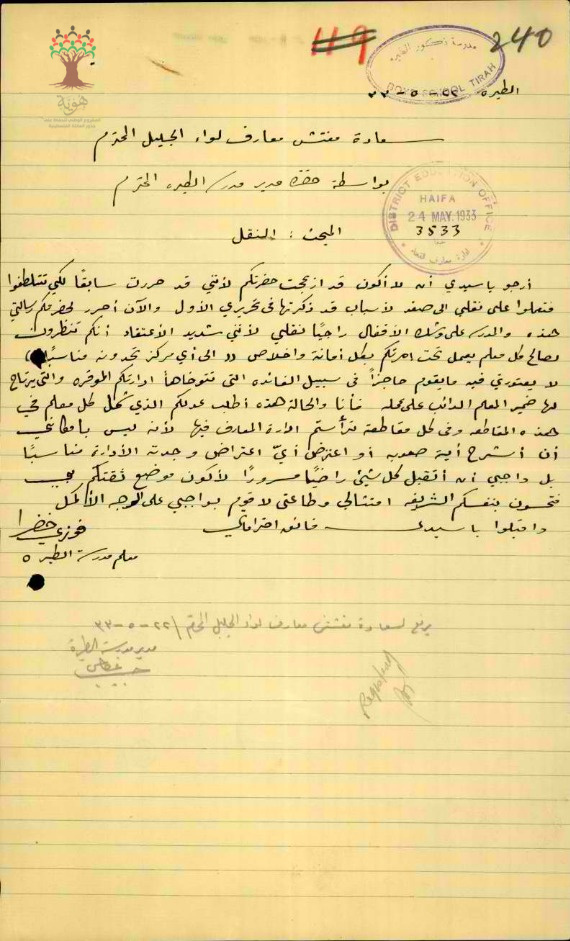 طلب نقل مقدم من المعلم فوزي الخضرا من مدرسة الطيرة