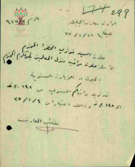 رسالة من مفتش المعارف الى المعلم فوزي الخضرا بخصوص زيادة راتبه السنوية