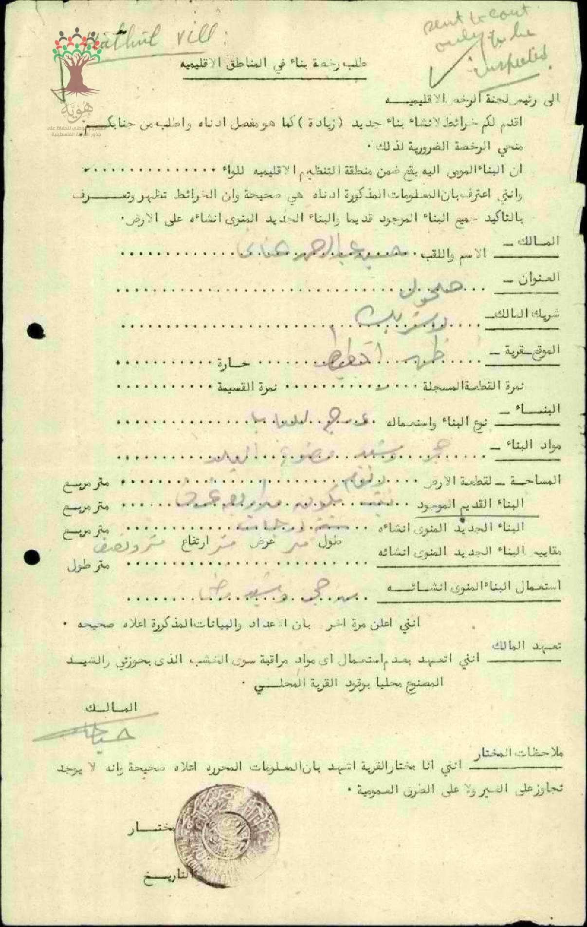 طلب رخصة بناء - حسين عبد الرحمن عناني - حلحول