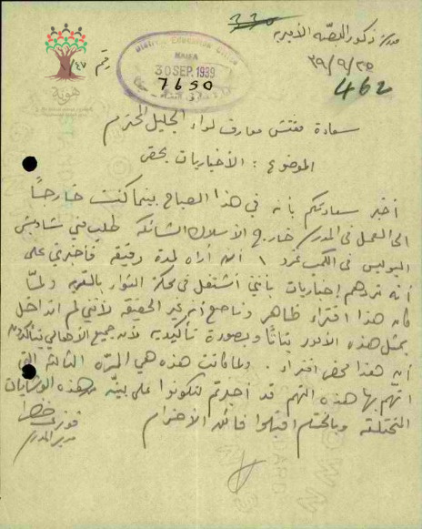 رسالة من المعلم فوزي الخضرا الى مفتش المعارف بخصوص اخباريات بحقه