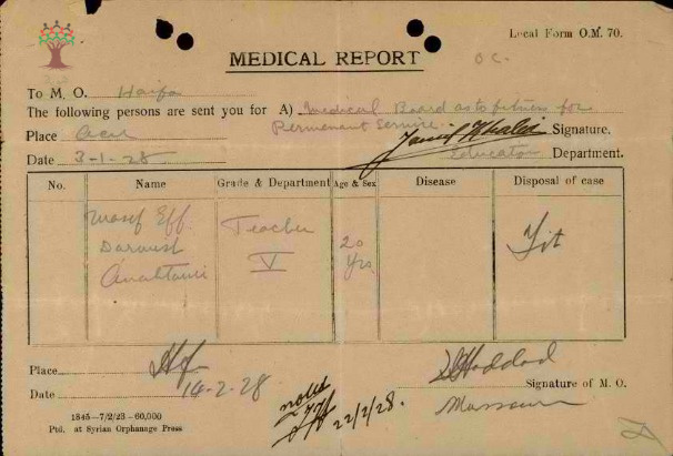 تقرير طبي عن غياب المعلم واصف عنبتاوي-مدرسة حيفا