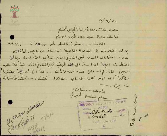 رسائل بخصوص استمارة سفر للمعلم واصف عنبتاوي