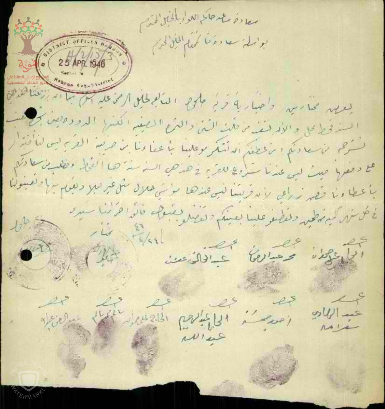 مختارو واختيارية حلحول شرحون لحاكم لواء الخليل سوء الموسم الزراعي في حلحول