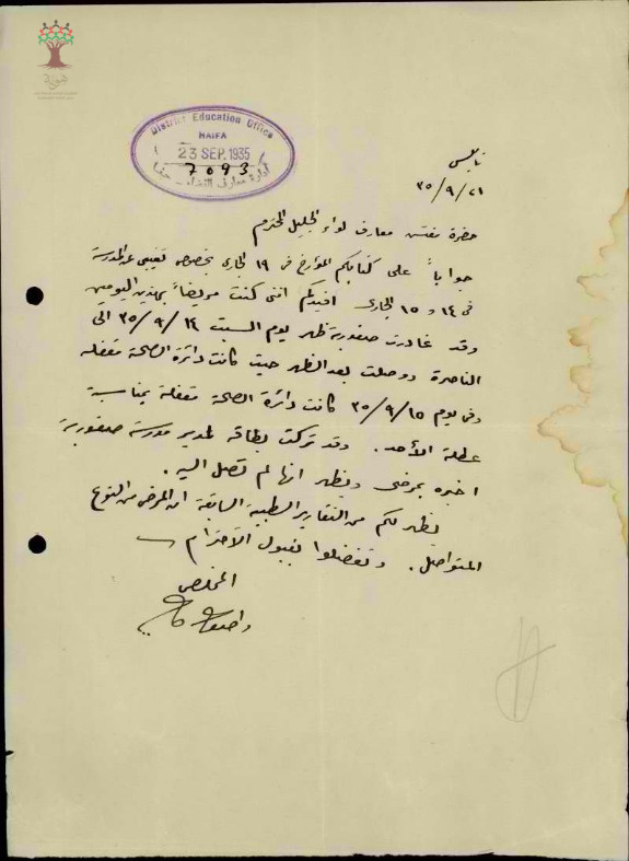 مجموعة رسائل وتقارير طبية عن غياب المعلم واصف عنبتاوي