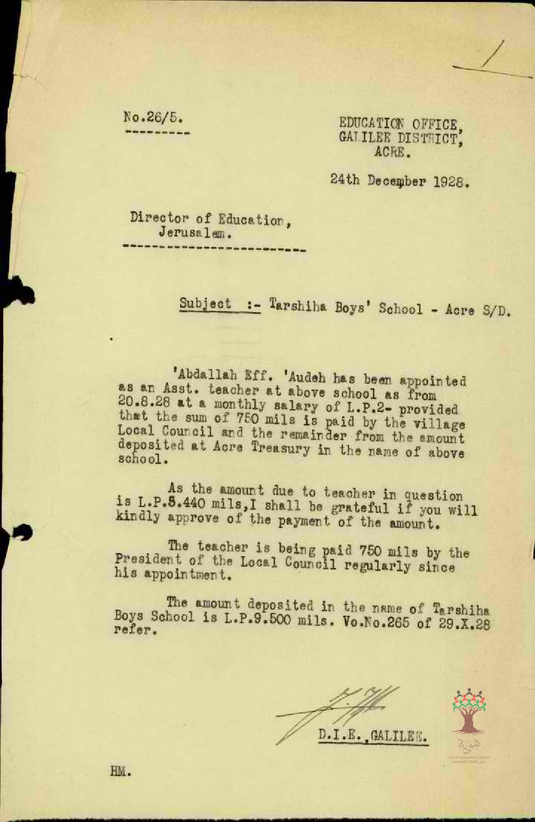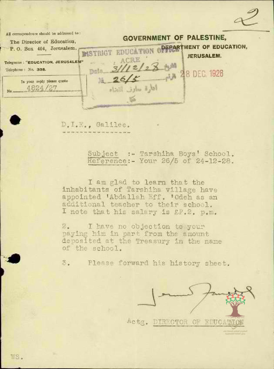 تعيين المعلم عبد الله عودة في مدرسة ترشيحا