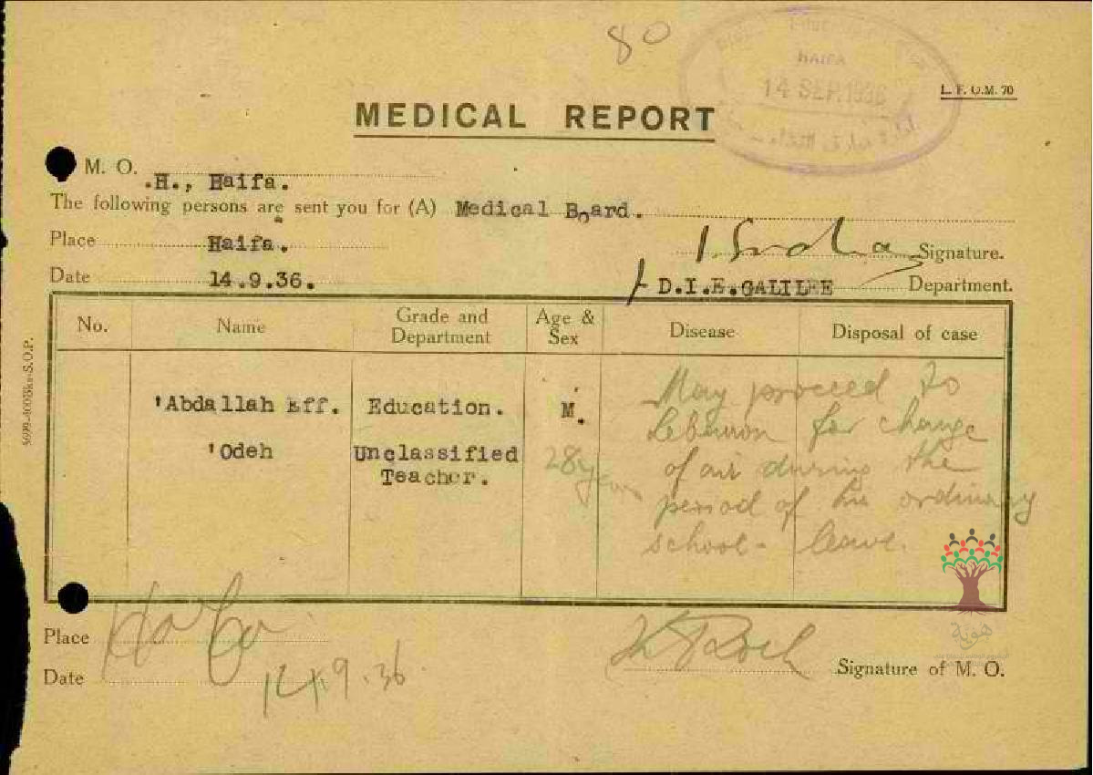 تقرير طبي عن غياب المعلم عبد الله عودة-مدرسة ترشيحا