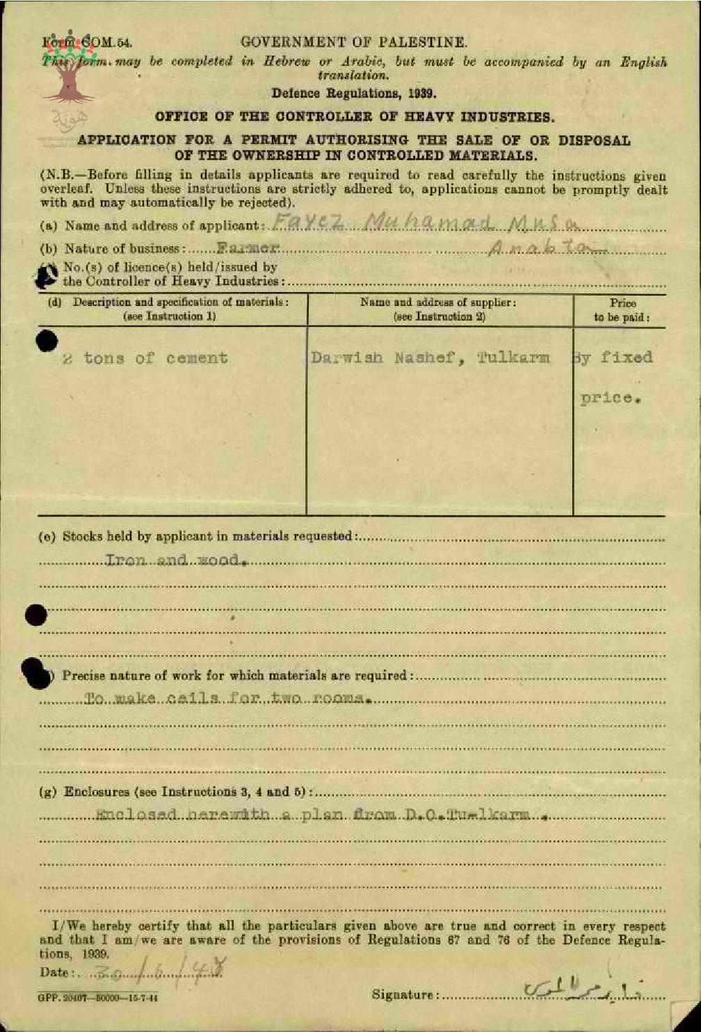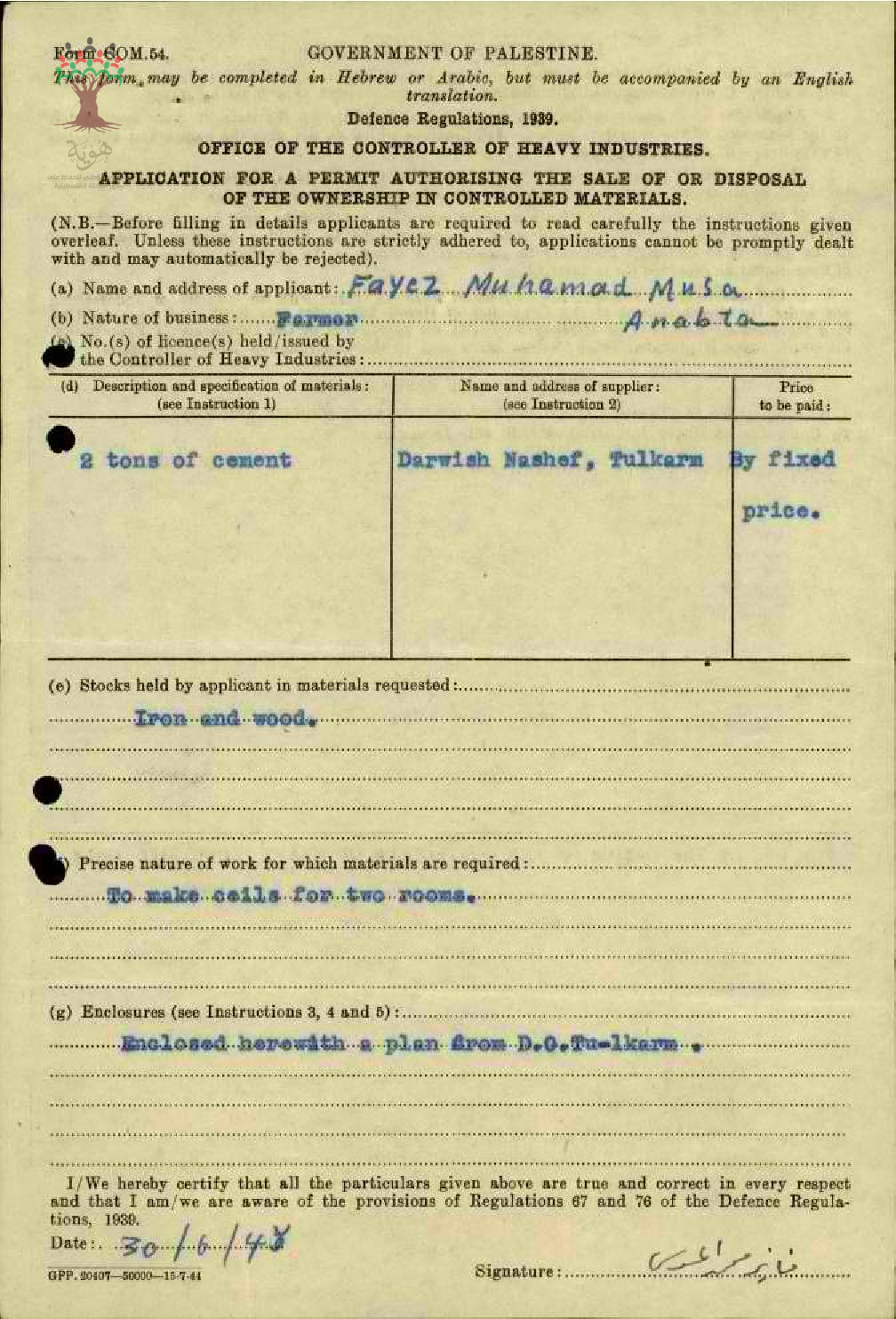 طلب رخصة بناء - فايز محمد موسى - عنبتا