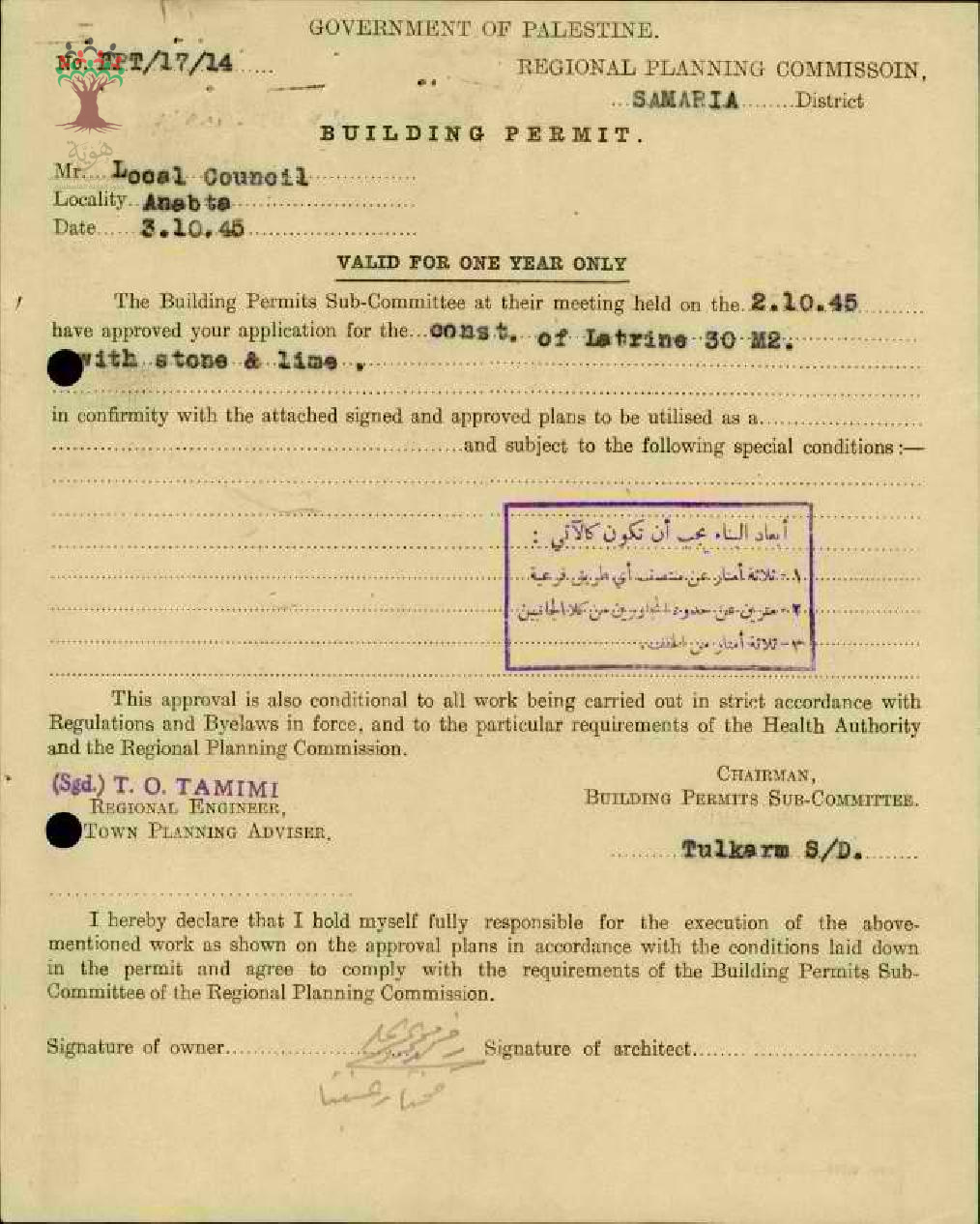 طلب رخصة بناء - المجلس المحلي لقرية عنبتا