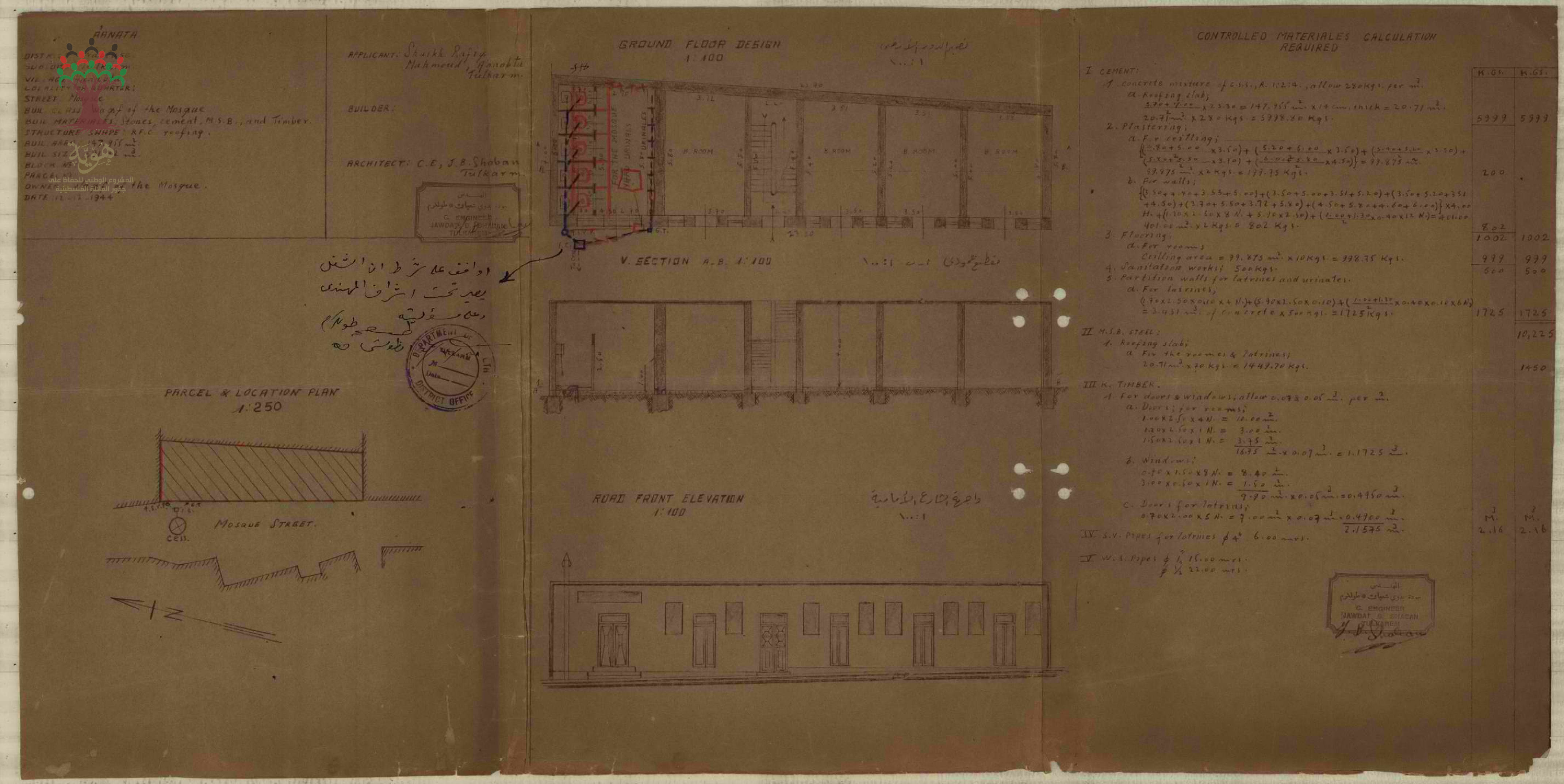 رسم بناء غرف ومراحيض للجامع - عنبتا