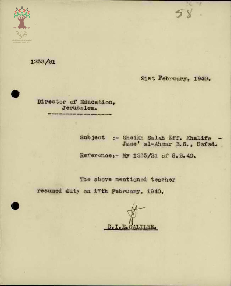 رسائل بخصوص عودة المعلم صلاح خليفة الى العمل