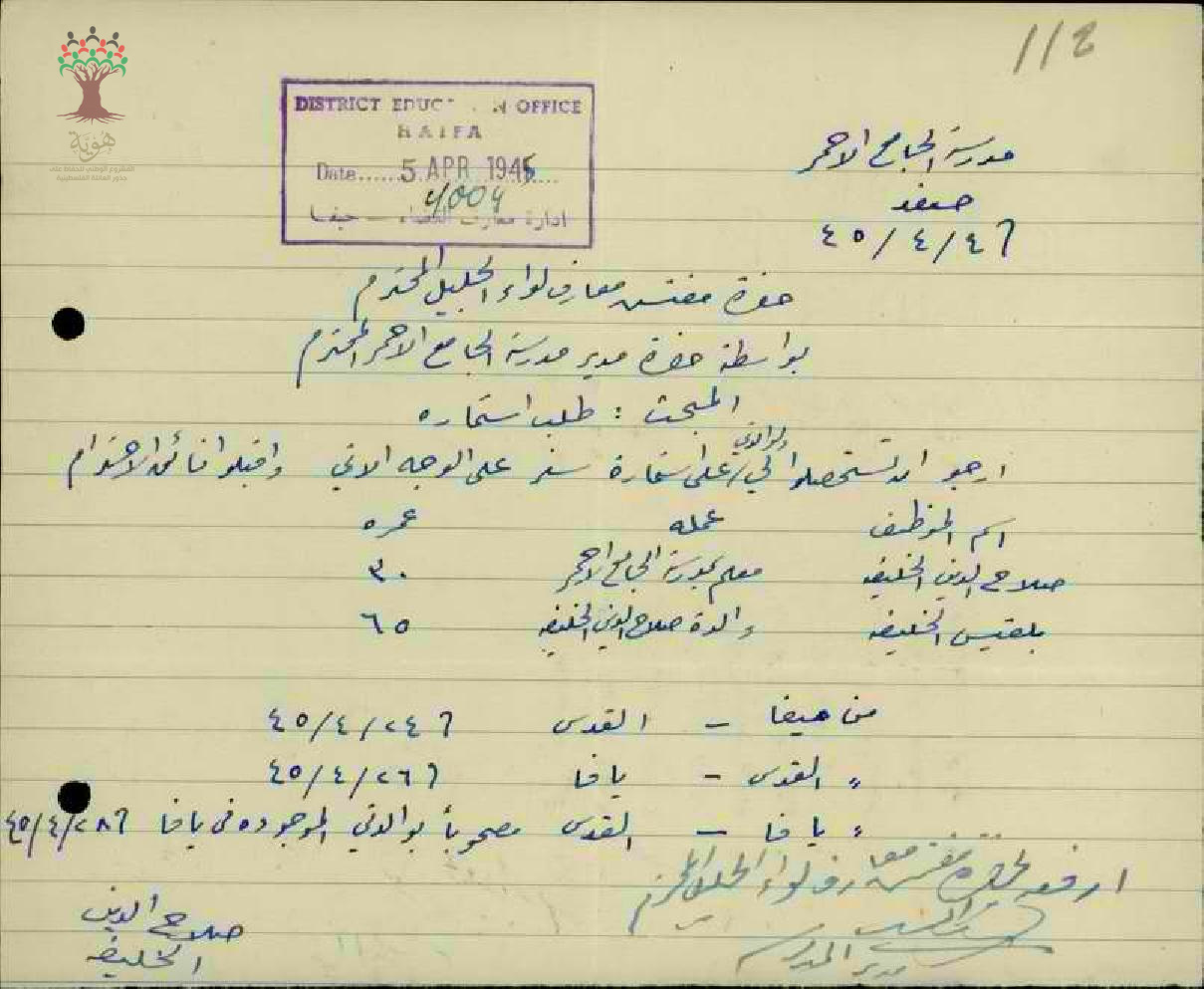طلب استمارة سفر مقدمة من المعلم صلاح امين خليفة/صفد