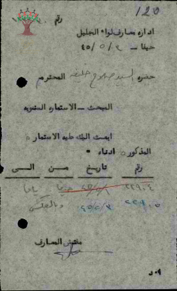 رسالة من مفتش المعارف الى مدير المعارف بخصوص استمارة سفر المعلم صلاح خليفة