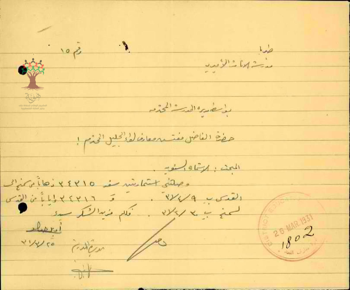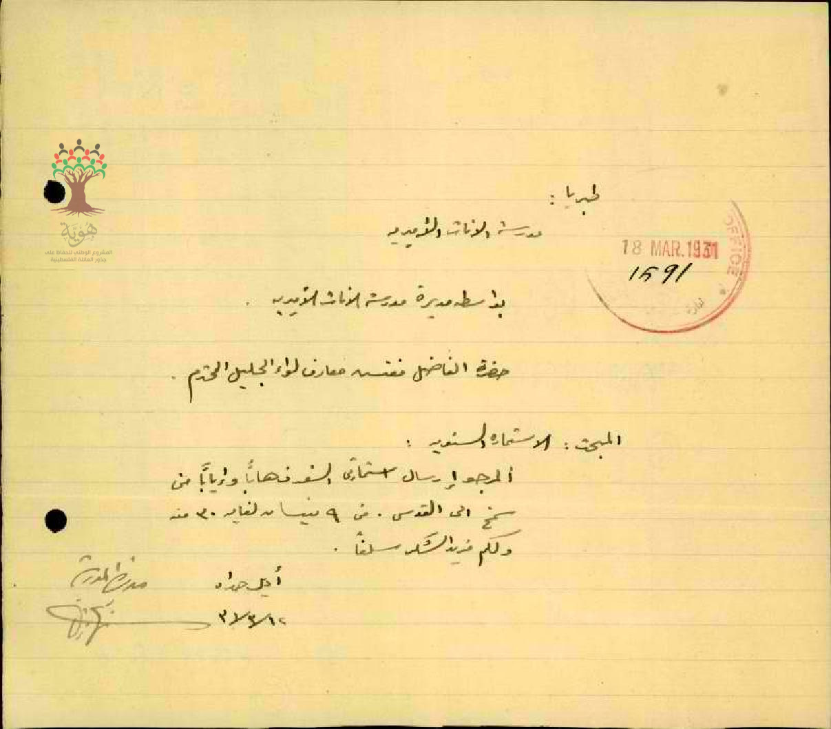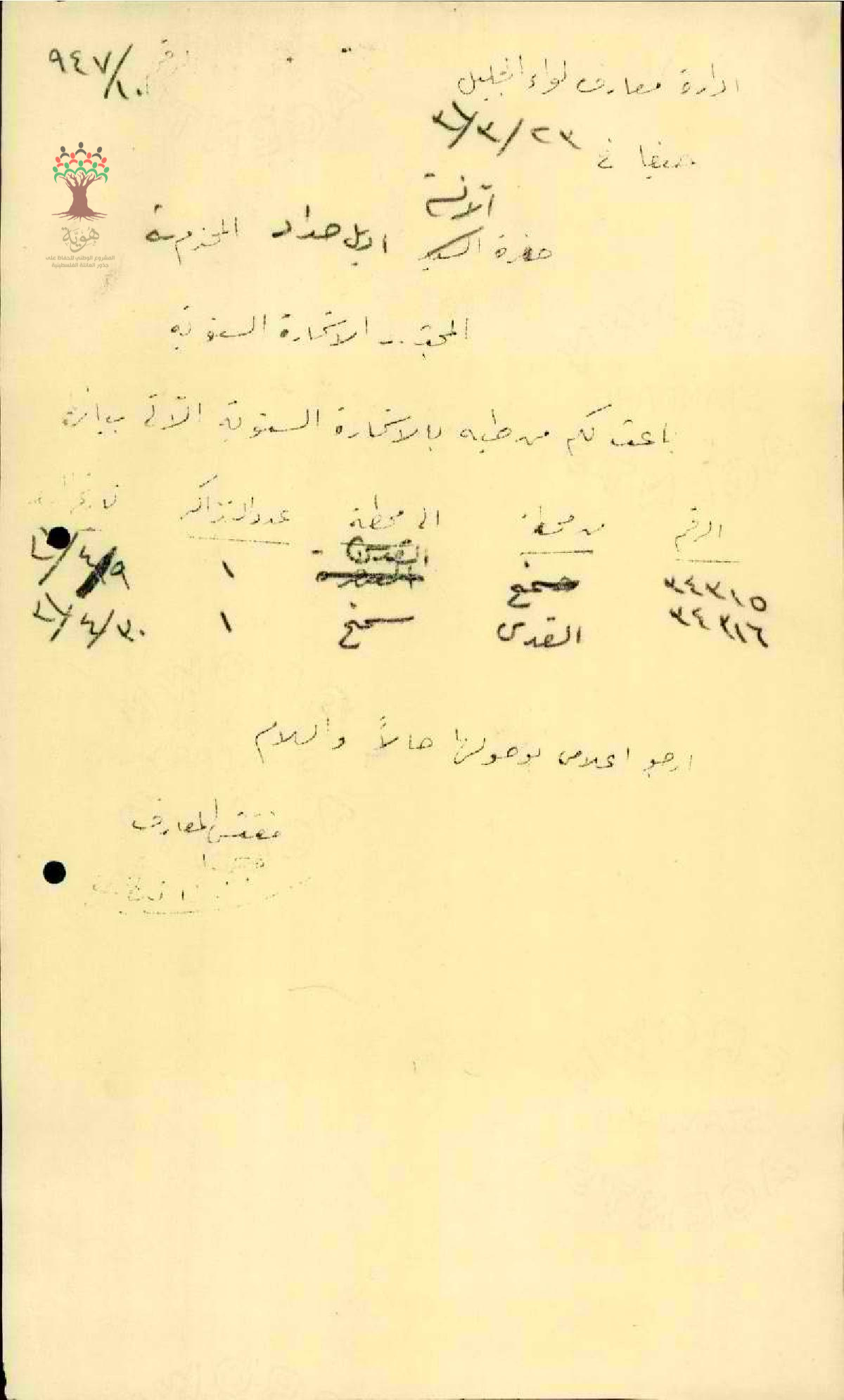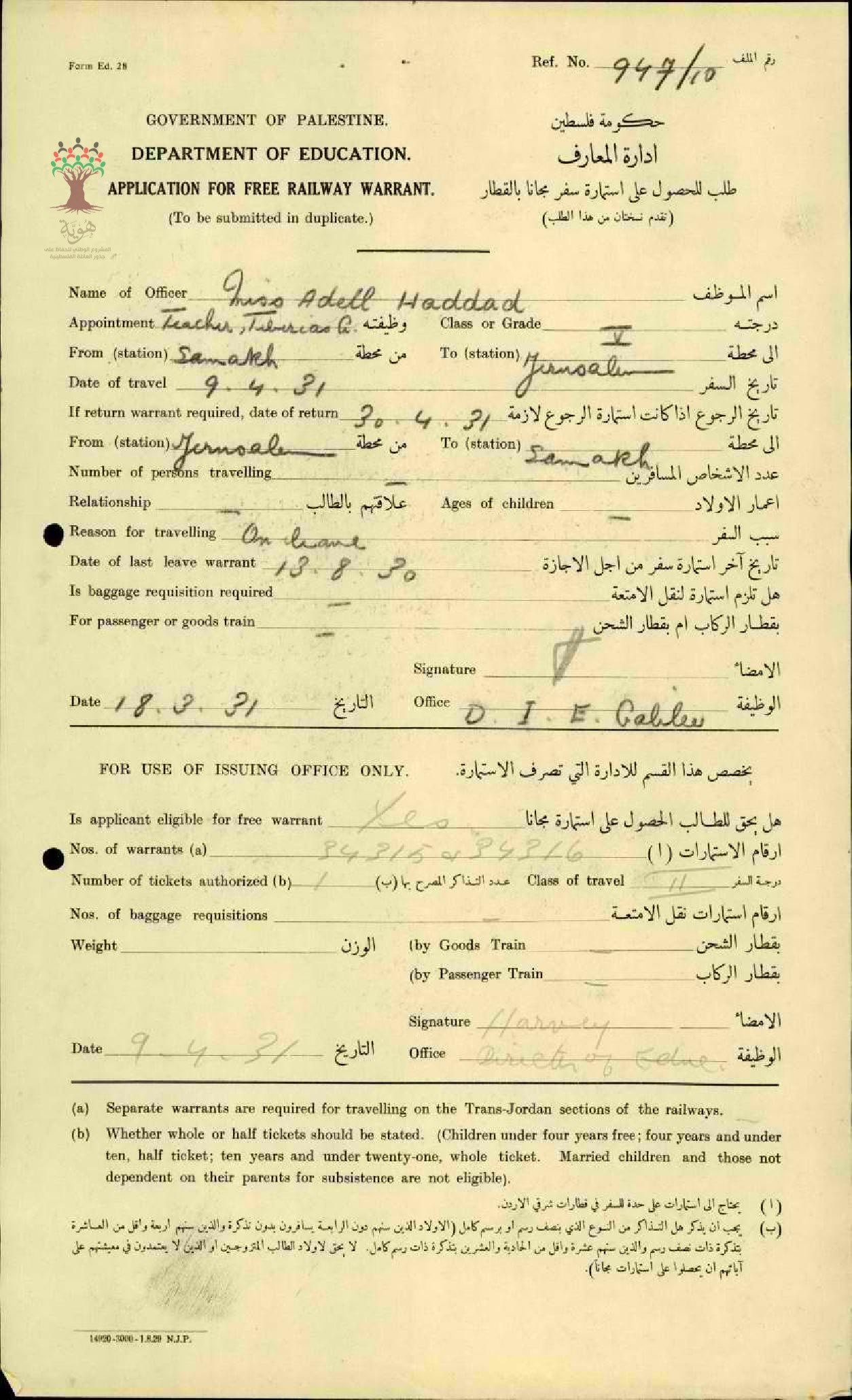مجموعة أوراق بخصوص استمارة سفر للمعلمة أديل نصرالله حداد