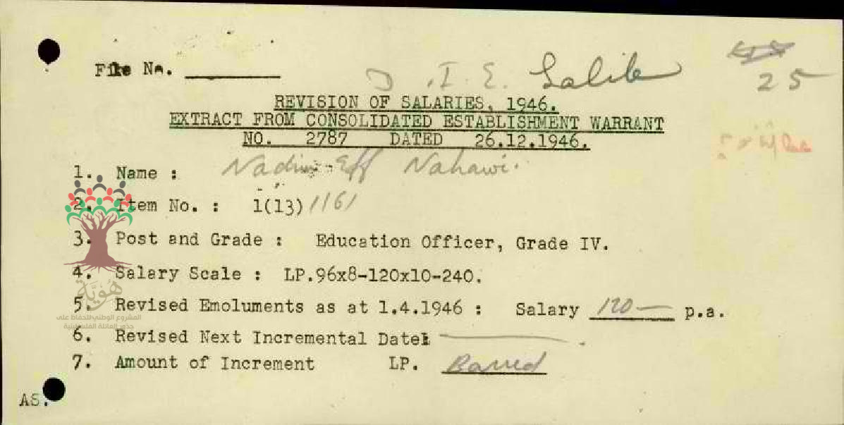 طلب زيادة مرتب مقدم من المعلم نديم النحوي - صفد - مدرسة عكا