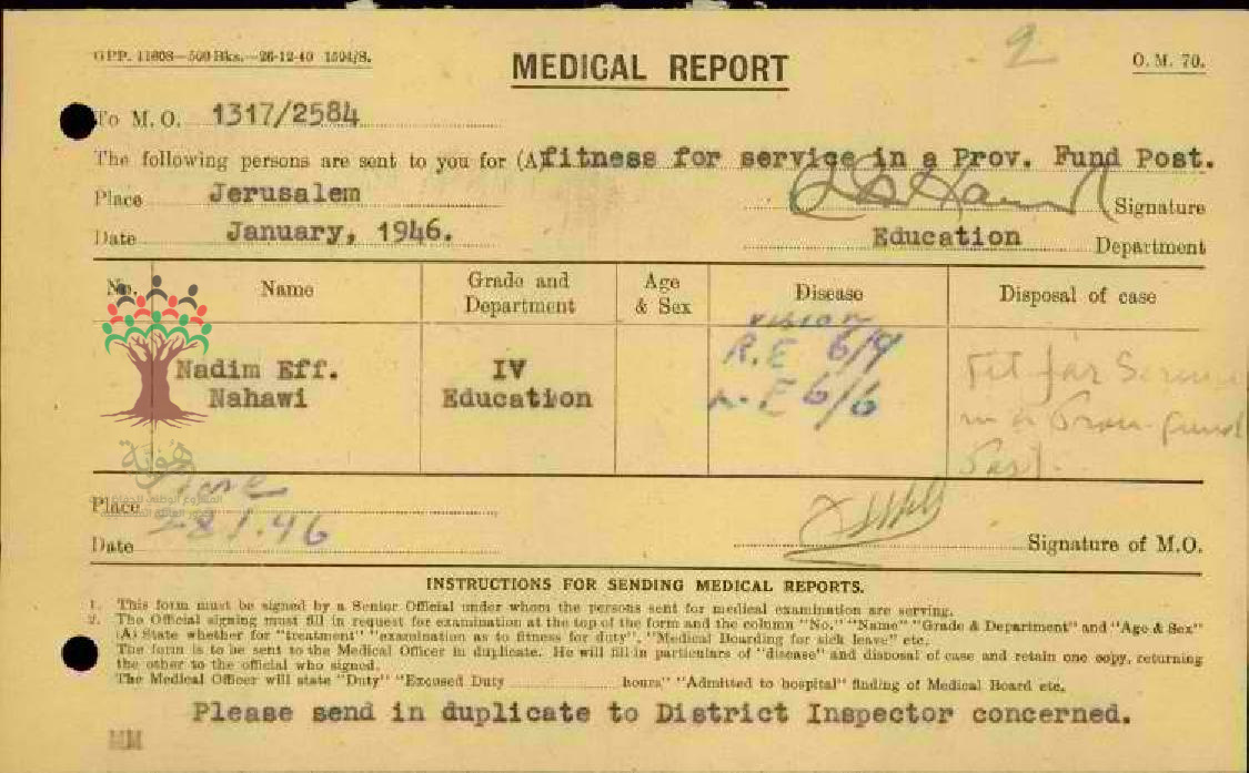 التقرير الطبي للمعلم نديم النحوي - صفد - مدرسة عكا