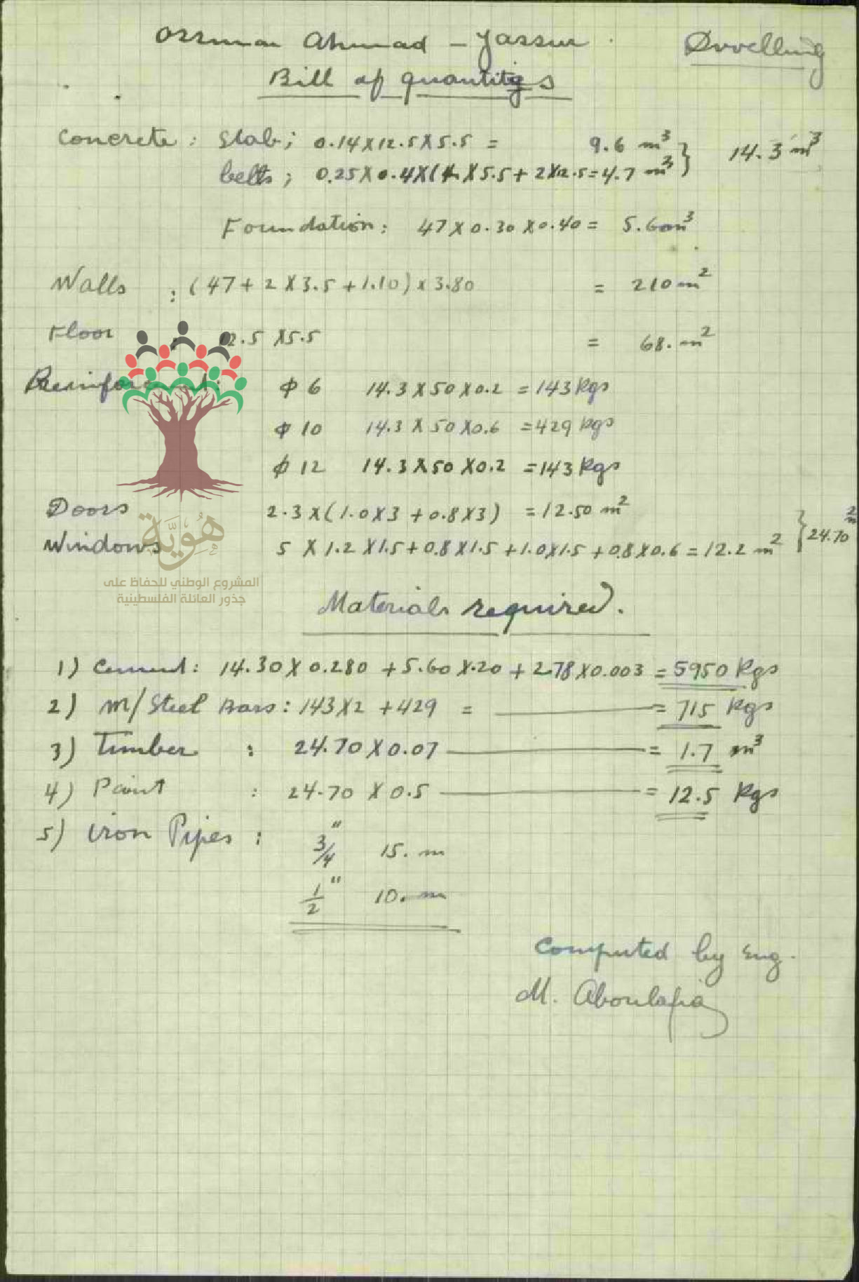 حساب احصائي لمنزل السيد عثمان أحمد أبو شوارب - ياصور