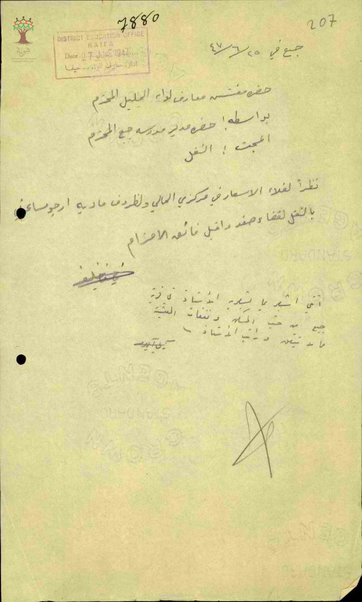 طلب نقل مقدم من قبل المعلم نايف خليفة - صفد - مدرسة مجد الكروم والصواوين وعلما وجبع