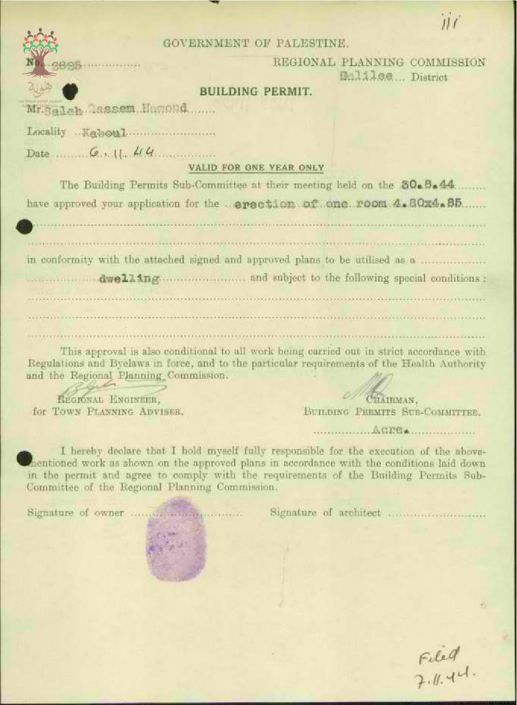 طلب رخصة بناء - صالح قاسم حمود - كابول
