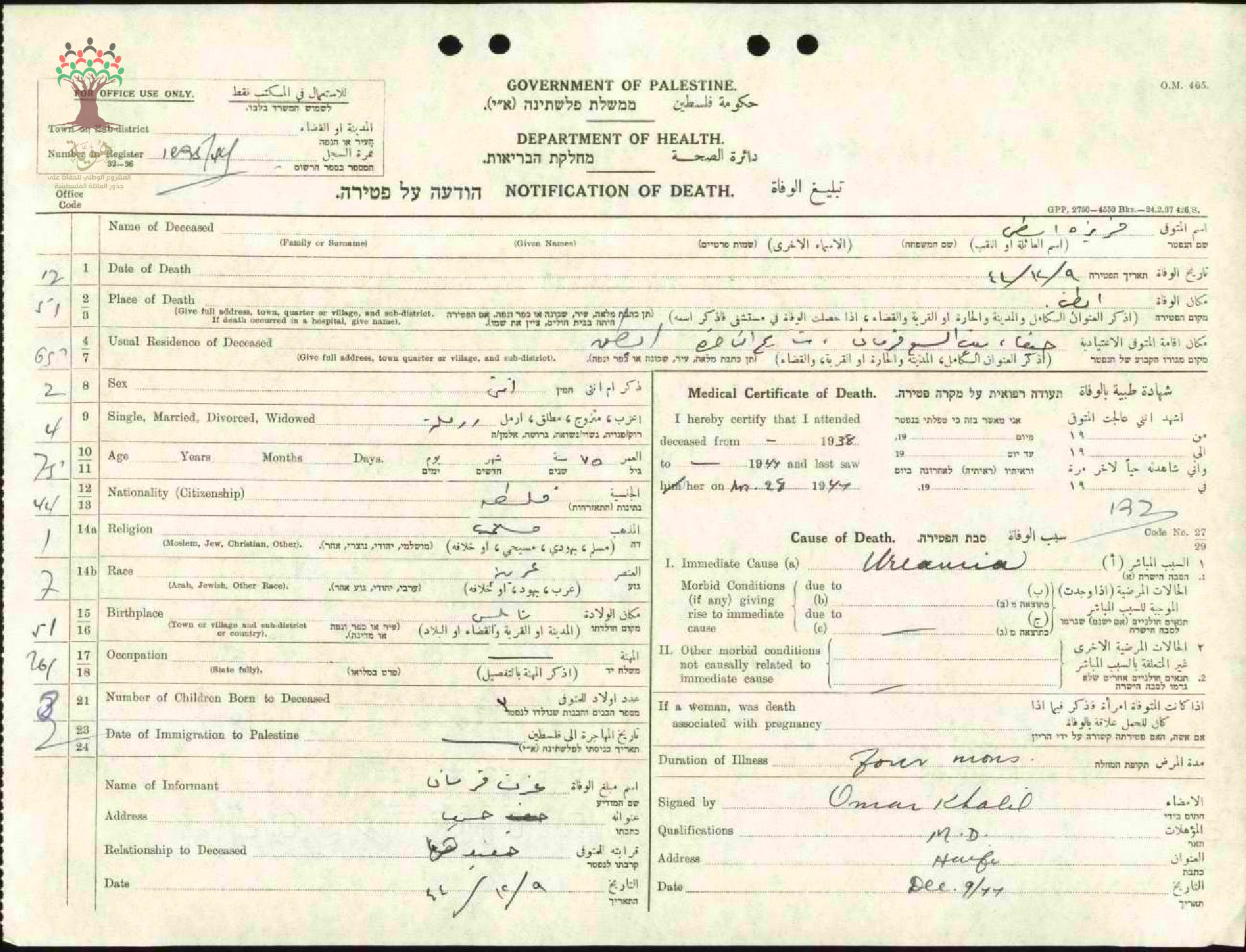 تبليغ وفاة - فريزة الأسطى - نابلس